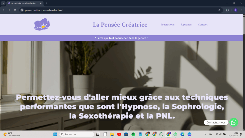 Notre mission consistait à valoriser son parcours et à présenter l’étendue de ses accompagnements à travers un site web.